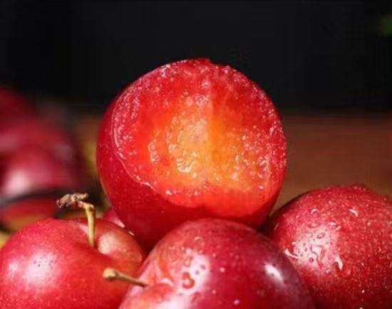果肉细腻脆嫩,酸甜浓郁,果香清雅独特,兼具樱桃的清香与李子的醇厚;口感清爽解腻,鲜食、加工皆宜;耐储运性较好,加工后果香更浓,酸甜平衡,风味独特。